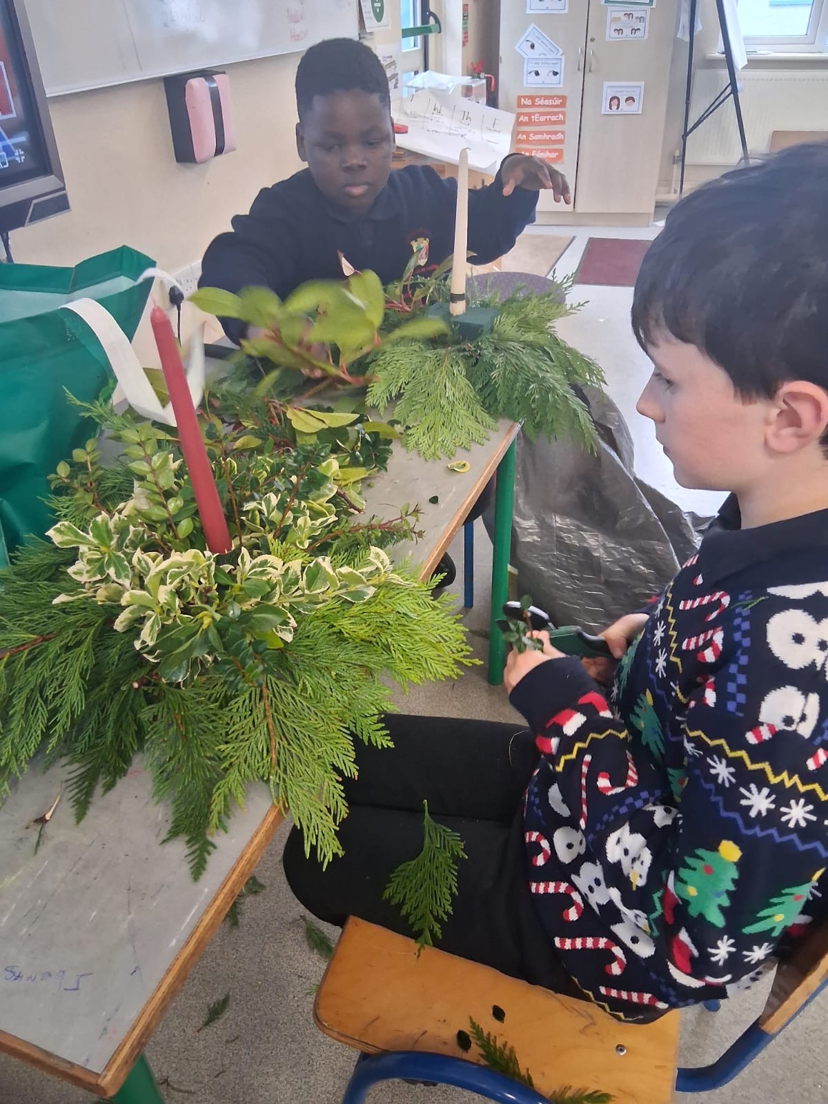 Rang 4 was full of Christmas cheer as the children enjoyed a festive wreath-making activity. The classroom was buzzing with excitement as pupils decorated their wreaths using greenery, ribbons and seasonal decorations. There was lots of laughter, sharing of ideas and festive music in the background as each wreath took shape. The finished creations were beautiful and unique, bringing a real sense of Christmas spirit to Rang 4.